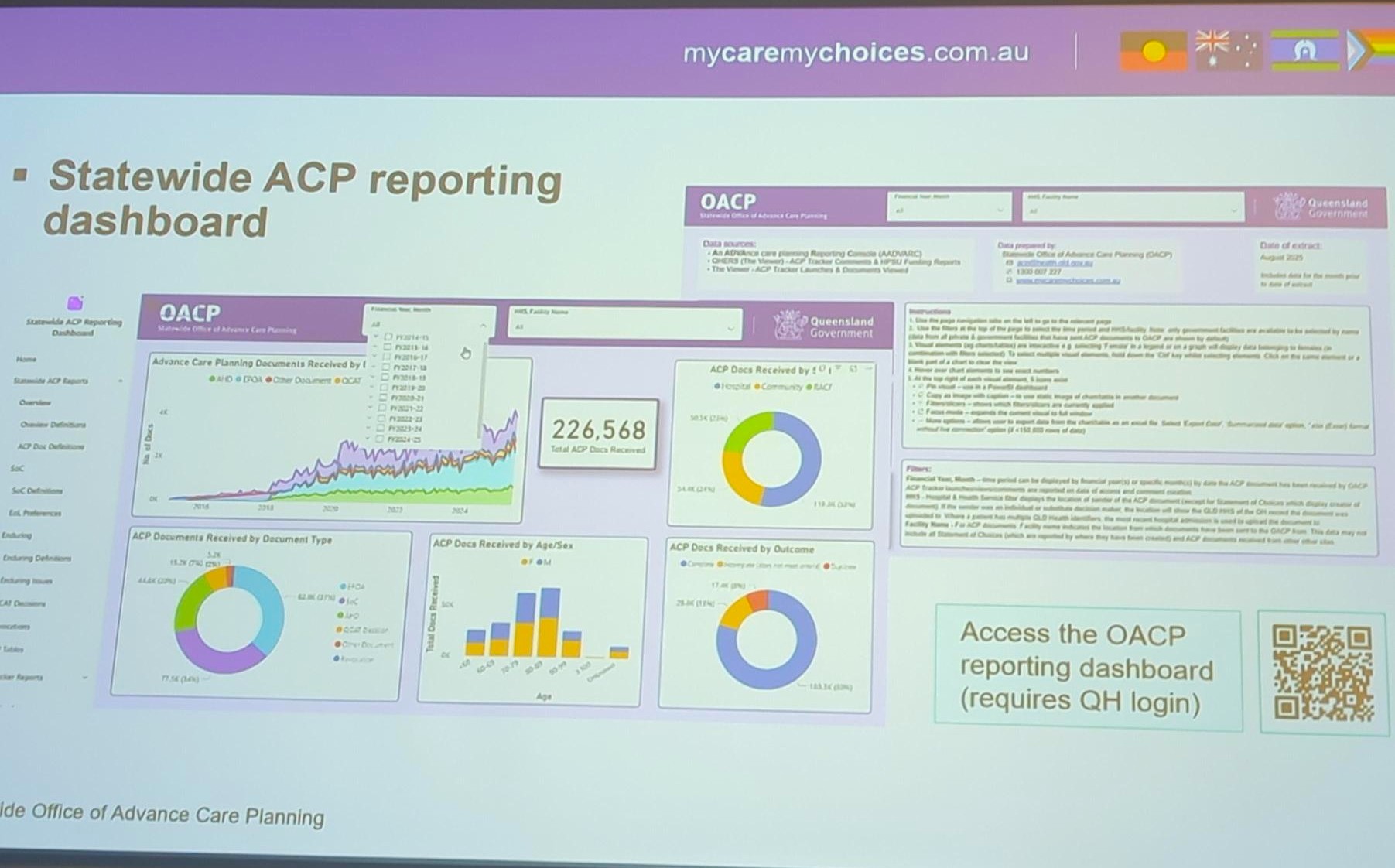Queensland has a statewide Office of Advance Care Planning and with this, a statewide ACP tracker. The system was built with clinicians to make ACPs accessible across health services, and it means consumers can lodge their ACP once and expect it to be available. Clinician can even add comments about ACP conversations to the tracker and these are included in discharge summaries to support ongoing planning.